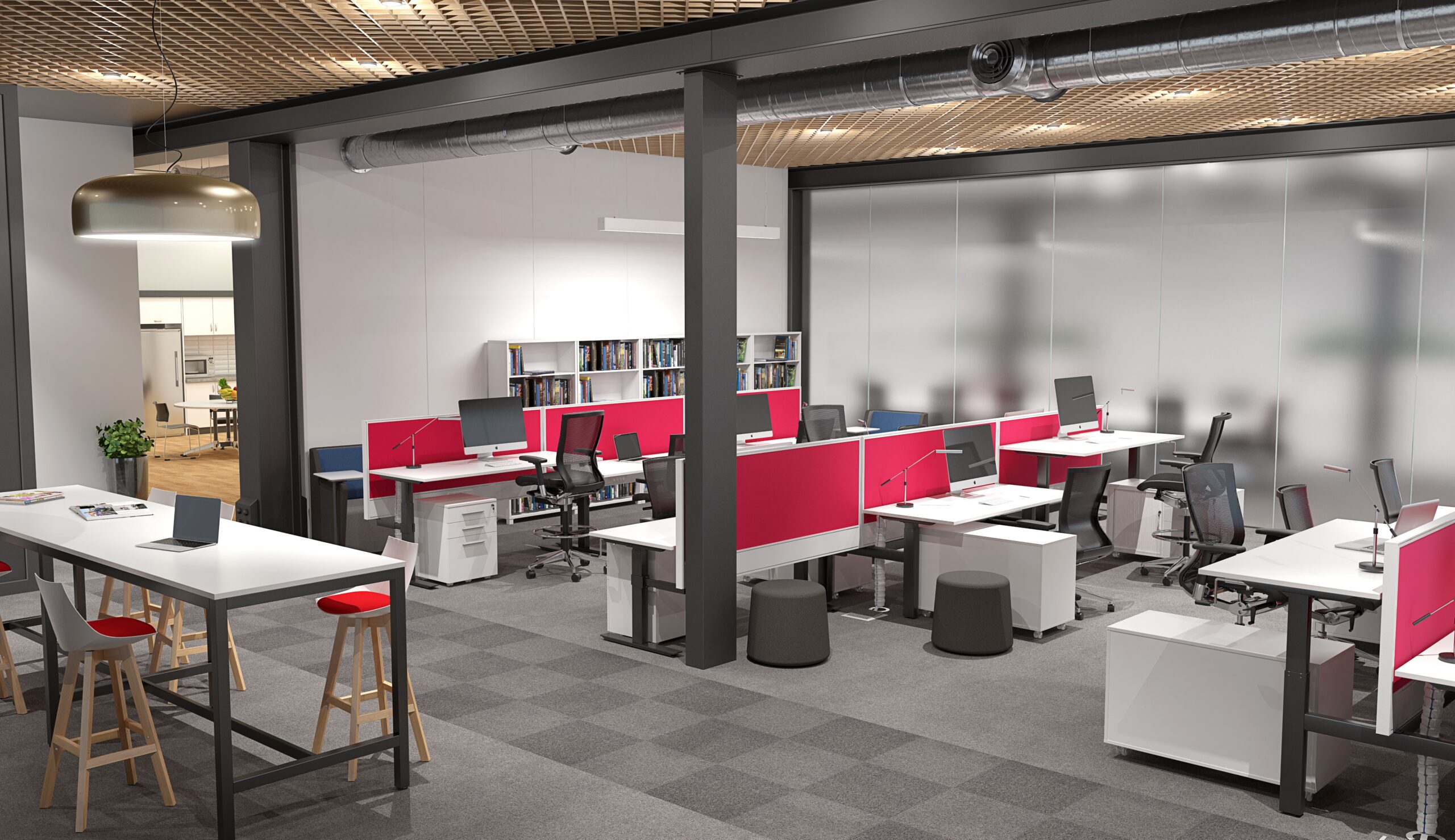 – This Desking system is available in multiple variations from a Single desk to a Double Desk to Corner Workstations, and with or without privacy screens.