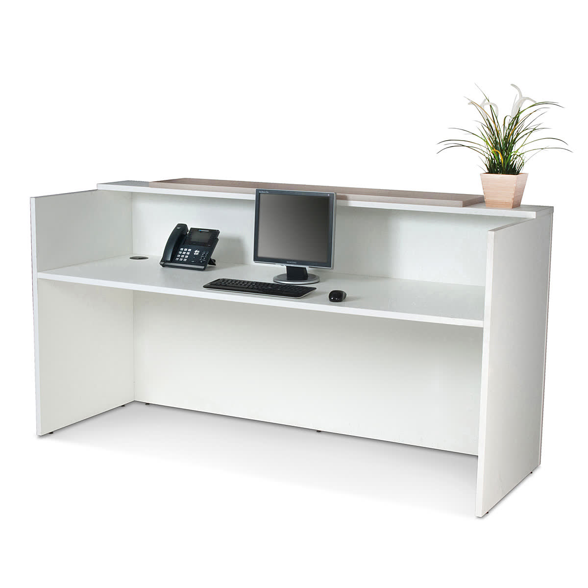 | Content | Brand New Excel Reception Counter Size: 1800W x 750D x 1100H Finished in Matt White with Tawny Linewood Feature Panel