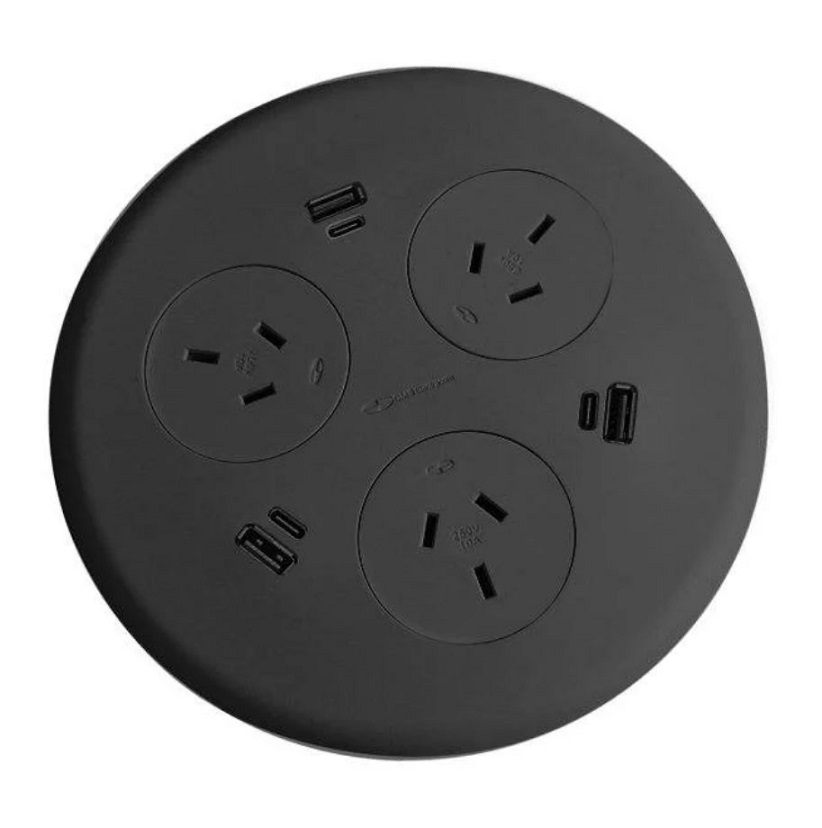 OPTIONS: - Colours: White or Black - Tabletop cutout is an additional $80 | Echo Trio Surface Mounted Module 3 GPO With 1.5m starter lead For a flush Mount to your work desk. Easy access to the GPO or charging ports while sitting on a chair.