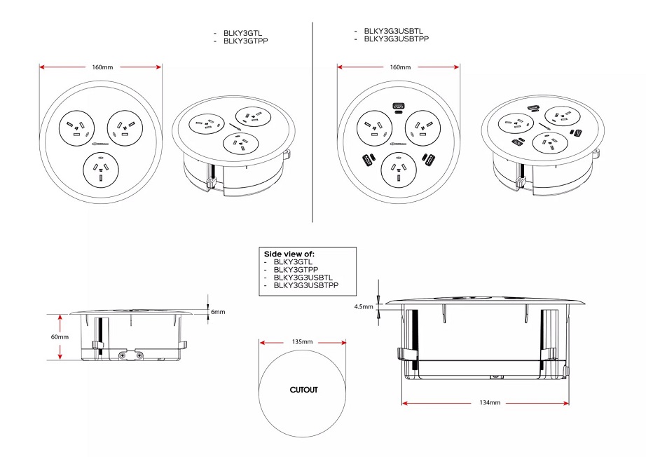 OPTIONS: - Colours: White or Black - Tabletop cutout is an additional $60 - Extension interconnecting power lead available - inquire within