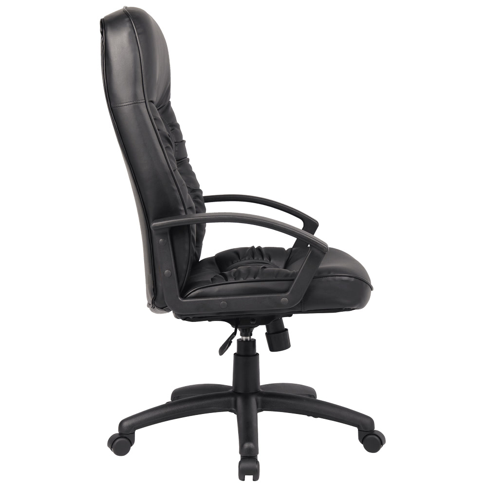 FEATURES: - Fixed Arms - Padded Head Rest - Commercial Grade PU Leather - Well Padded Layer Cushion seat and back - Lockable Tilting back and height adjustable - Free Float or Lock Mechanism - High Back for extra support - Nylon Star Base - Tension Control - 5 Year Warranty
