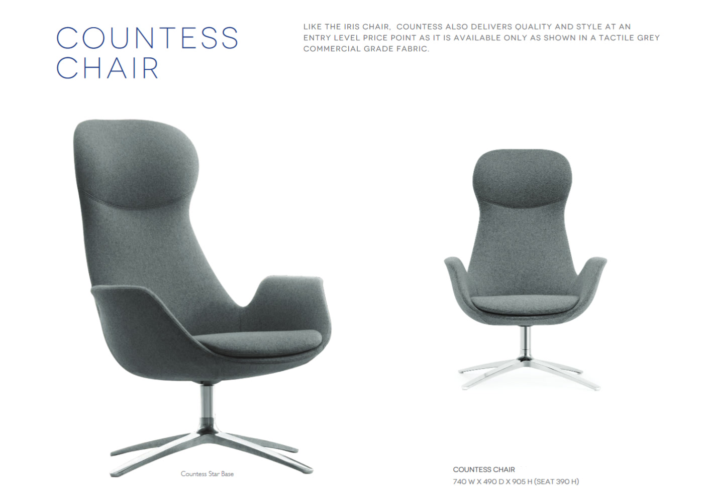 | Content | Countess Star Base Swivel Lounge Size: 740W x 490D x 905H / 390H Seat