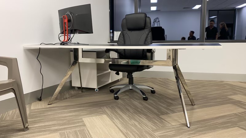 This modern industrial design is sure to make a powerful statement in any Office.