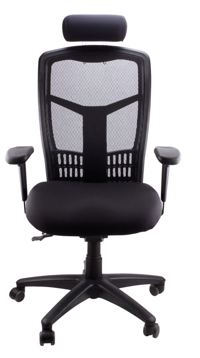 | Content | Mesh Deluxe High Back Executive Chair Seat: 510W x 470D x 460 - 590H This is a high quality commercial grade fully ergonomic chair. Complete with 4 lever adjustments, headrest, and adjustable arms this chair is built for long hours sitting. Comfortable, durable and long-lasting, this is a great executive chair for any office.