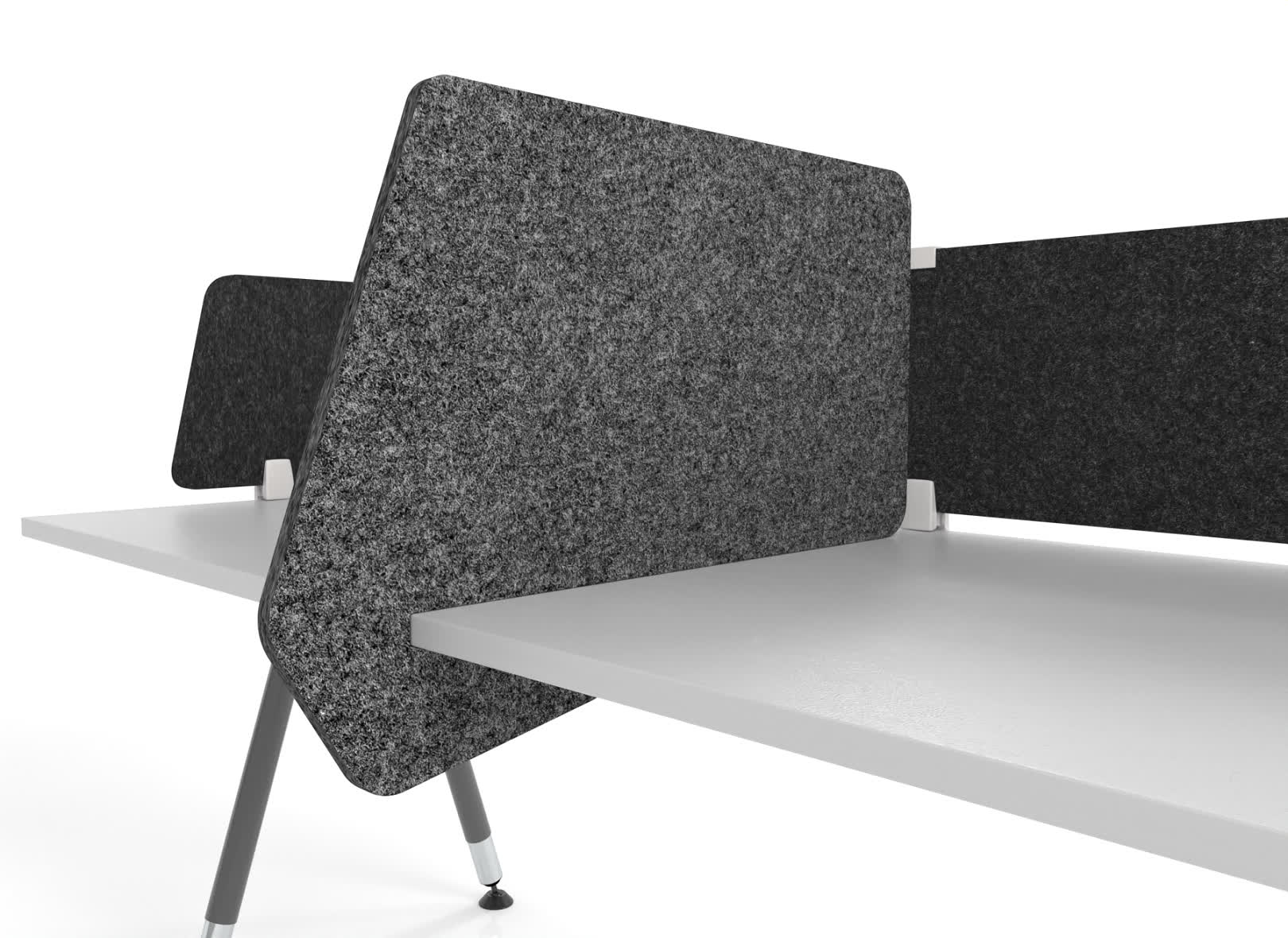 These commercial-grade screens are a quick and easy way to divide office space or for extra privacy. And can be connected in any configuration, whether a 4-way cluster or straight-row desk.