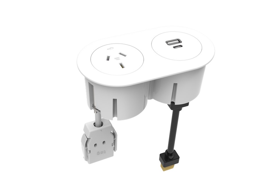 Flush Mount to Any Table Top. This module will enhance the look and usability of any table or desk. Easy access to the GPOs or charging ports while sitting on a chair. We can cut and fit to any desk for an extra $80 incl GST