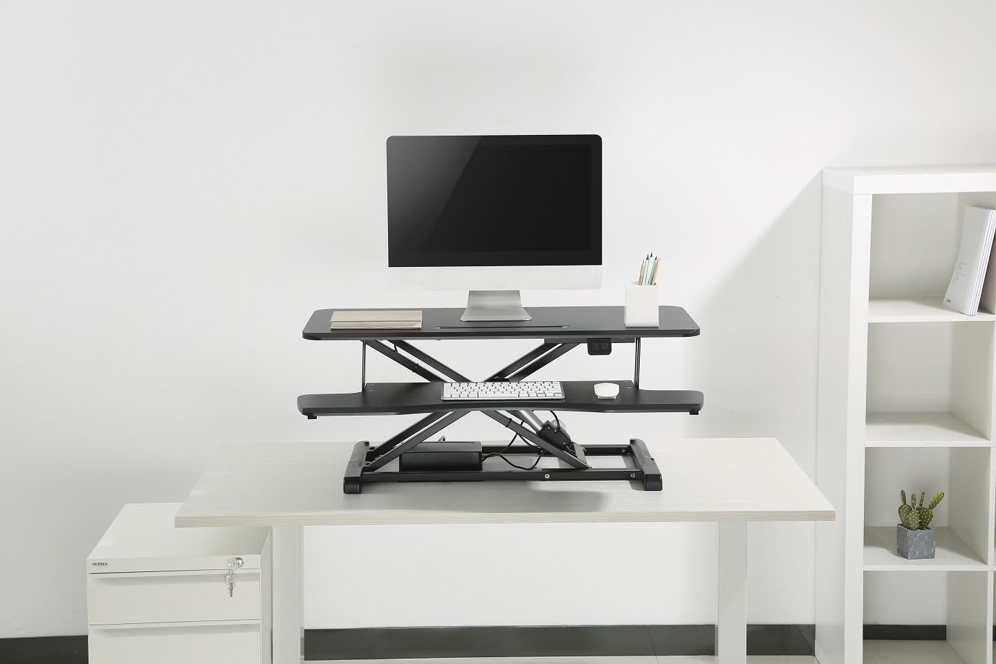 Exclusive in our range, this Electric Riser transforms your existing workspace into a Sit & Stand desk with ease.