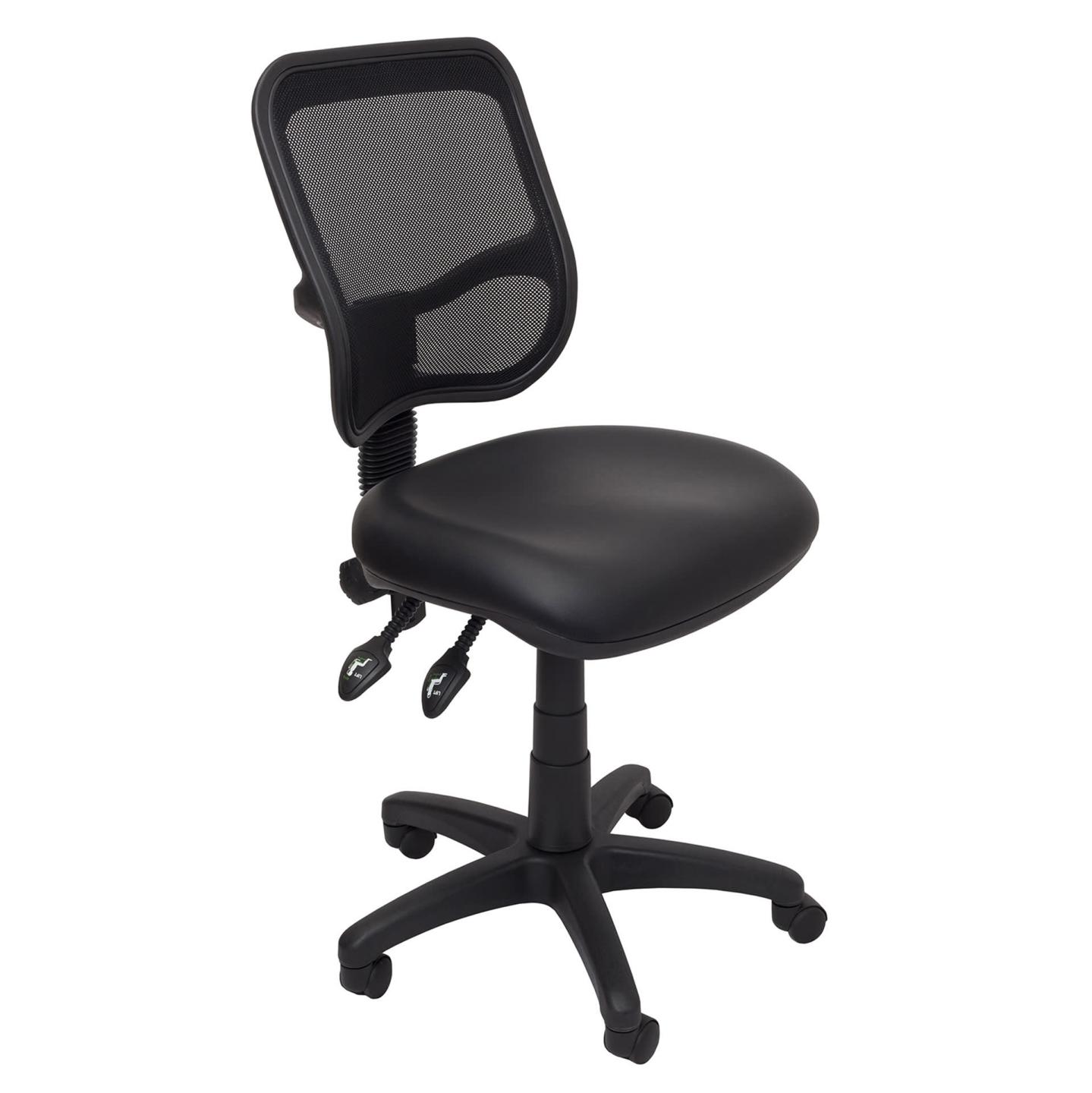 Our PU300 is a commercial grade executive operator chair with high back and adjustable arms. This quality office chair comes standard with a range of adjustments, including a seat and back tilt. Compliment with seat slide for extra seat depth, and ratchet back for easy back height adjustment. Constructed with a durable chrome base, and upholstered in soft black PU.