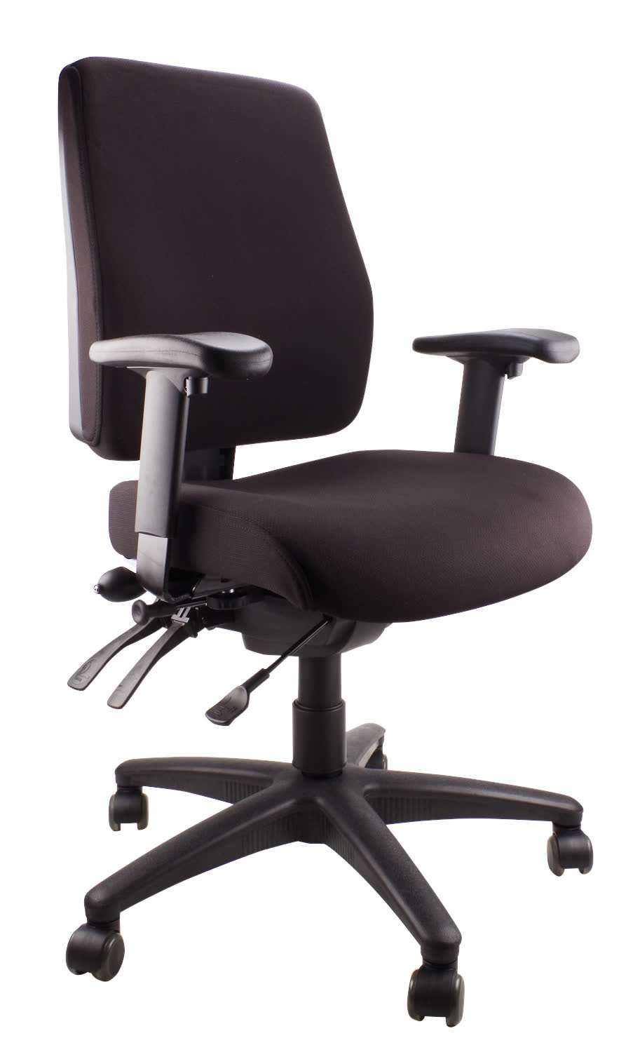 FEATURES: - AFRDI Level 6 Accredited - Ratchet Height Adjustable Back - Moulded Foam in Seat And Back - 4 Lever Fully Ergonomic Mechanism - Seat Slide Feature To Adjust Seat Depth - Optional Height And Width Adjustable Arms - Optional Polished Alloy Base and Armrests - Pneumatic Lumbar Pump Adjustment - Seat And Back Angle Adjustment - Available in 5 Colours and PU - Weight rating 160kg - 5 Years Warranty Your Choice of 3 Colours - Black - Navy - Charcoal