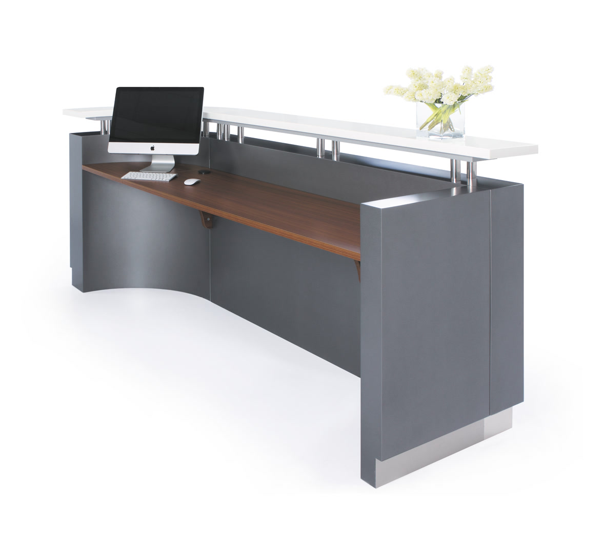 Executive J-Shaped Reception Counter – Metallic Grey LHS or RHS