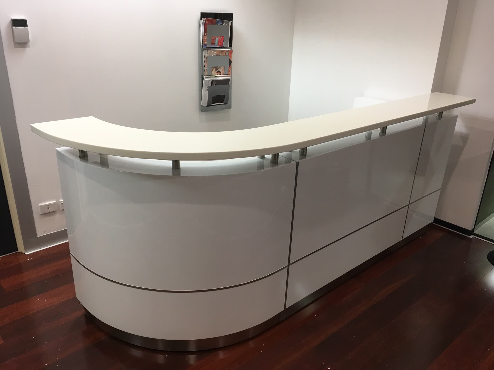 This reception counter is a statement piece for professional reception spaces.