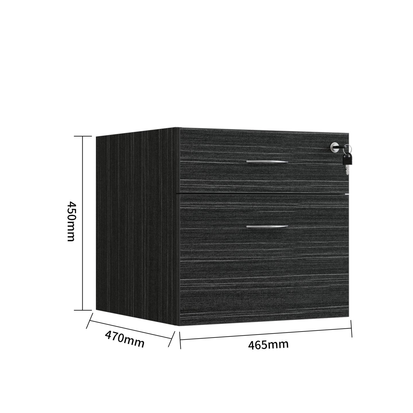 Fixed Pedestal 2 Drawers With Lock – Blackened Linewood