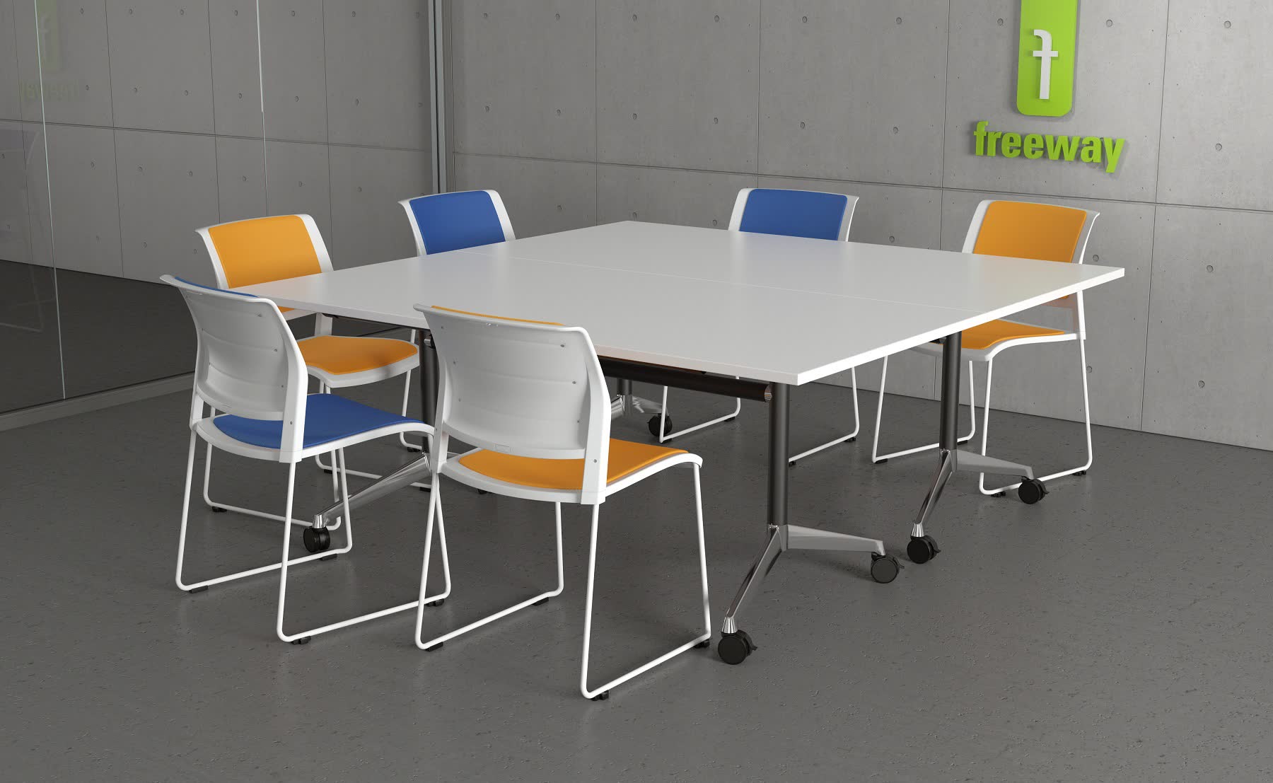 A good buy for a small budget. This Modern and sleek meeting table is great for quick meetings, breakout areas or interviews. This table is available in many colours with White, Black or Chrome Metal base.