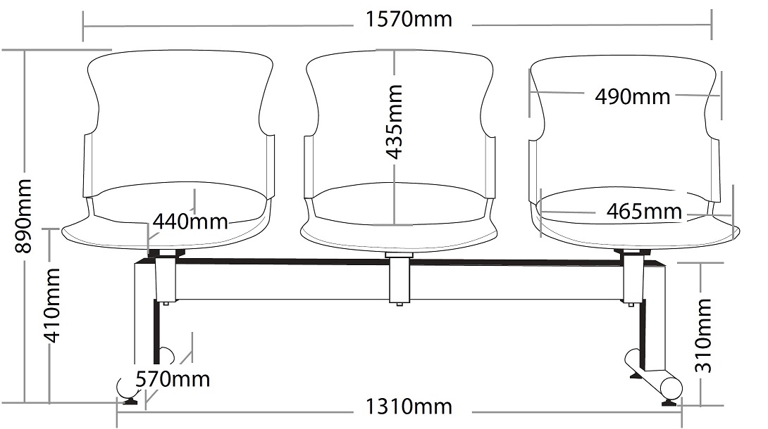 Available Options are 2 Seater: 1020W x 570D x 890H 3 Seater: 1570W x 570D x 890H