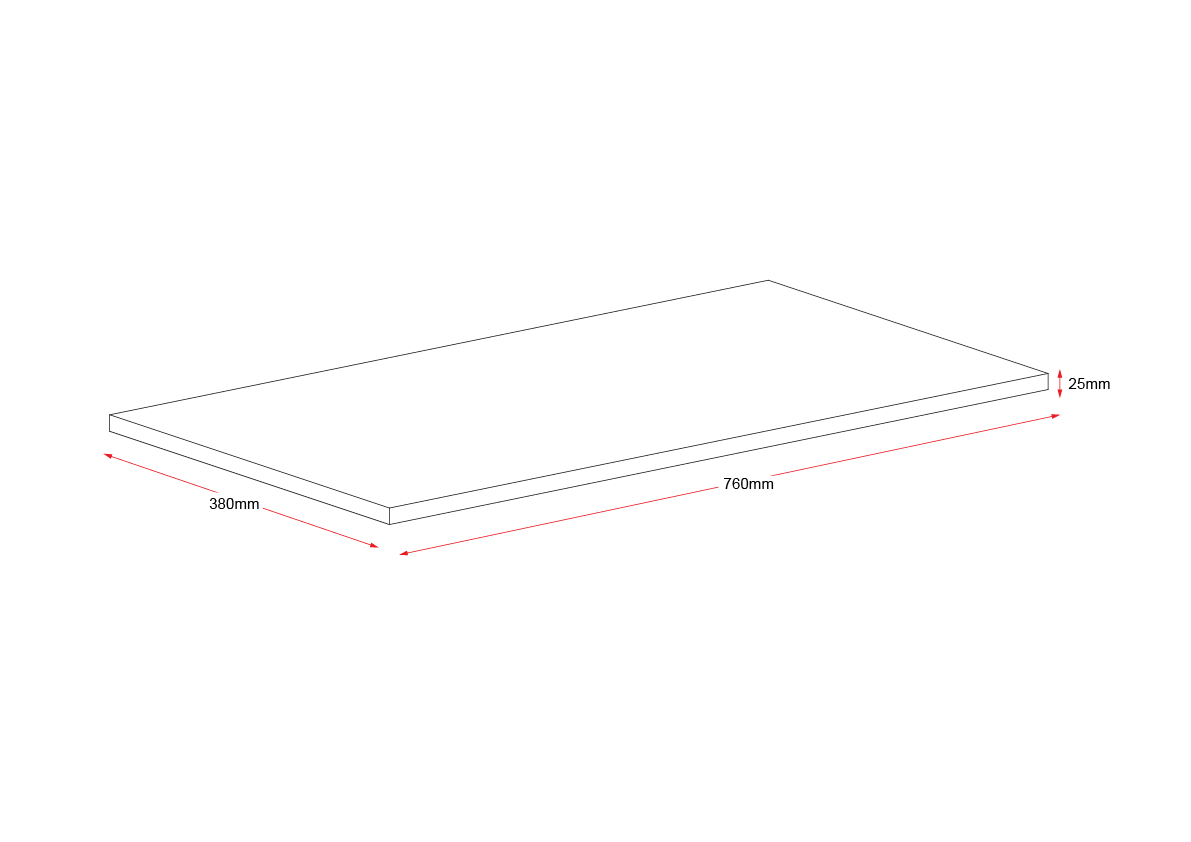 Available in 2 Sizes To Suit 900W Cabinet : 760W x 380D x 25T To Suit 1200W Cabinet: 1060W x 380D x 25T