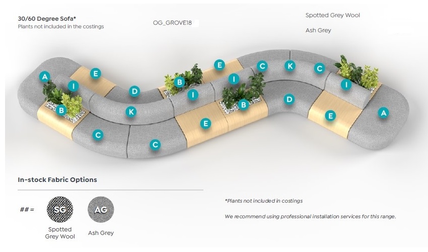 Built for durability, the Grove Range uses heavy-duty commercial fabric options suitable for 24-hour use. This ensures long-lasting performance and comfort for the user, and this quality will last many years of active use. With 90° and 60° corners, this sofa system accommodates various plan layouts, providing flexibility for any environment. Available in double-sided and single-sided configurations, the Grove Range meets specific sizing and collaboration needs. The Grove combines style, functionality, and durability, making it an ideal choice for a dynamic, collaborative workspace.
