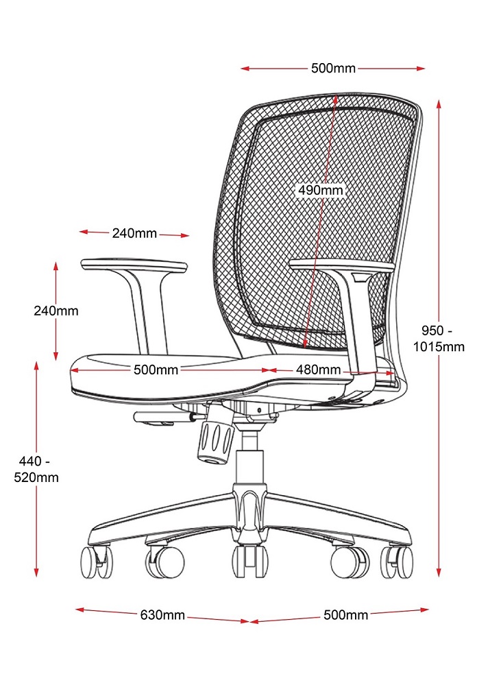 | Content | Hartley Mesh Back Chair Size: 650W x 480D x 950H Seat: 510W x 440D x 500H