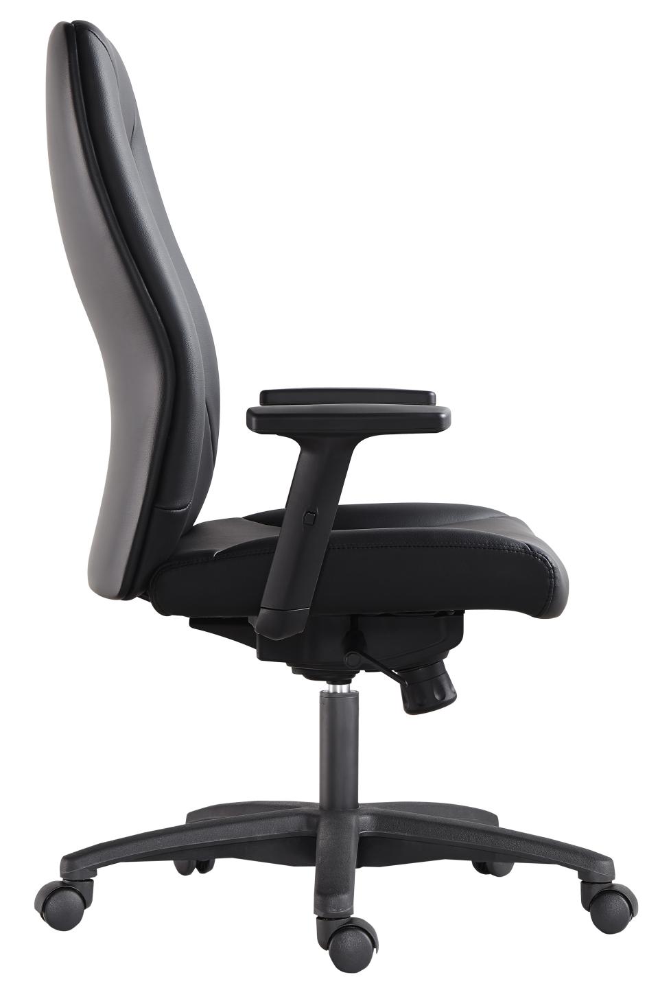 Our PU300 is a commercial grade executive operator chair with high back and adjustable arms. This quality office chair comes standard with a range of adjustments, including a seat and back tilt. Compliment with seat slide for extra seat depth, and ratchet back for easy back height adjustment. Constructed with a durable chrome base, and upholstered in soft black PU.