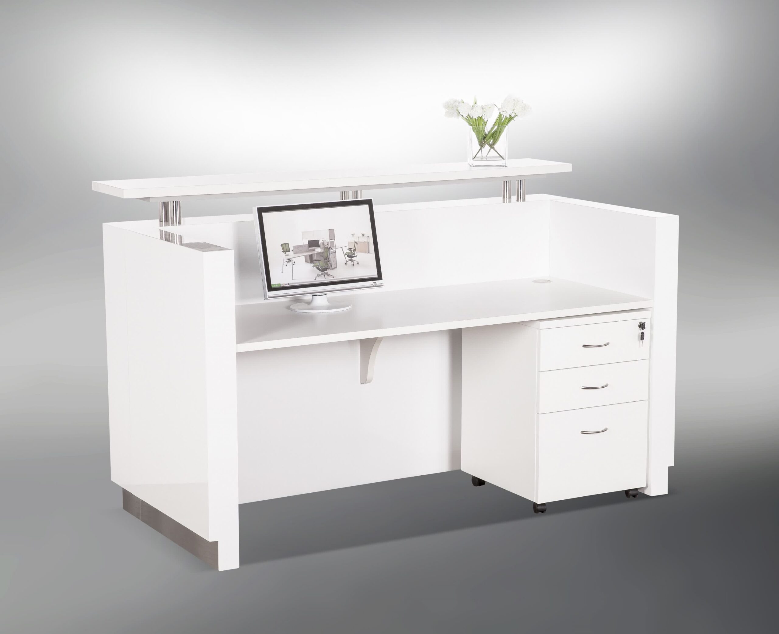This is a high-quality reception counter. Well designed with a sleek, modern look. Comes in 3 colours to suit any decor. This is strictly no cheap quality furniture. This quality reception will last for years without any issues.