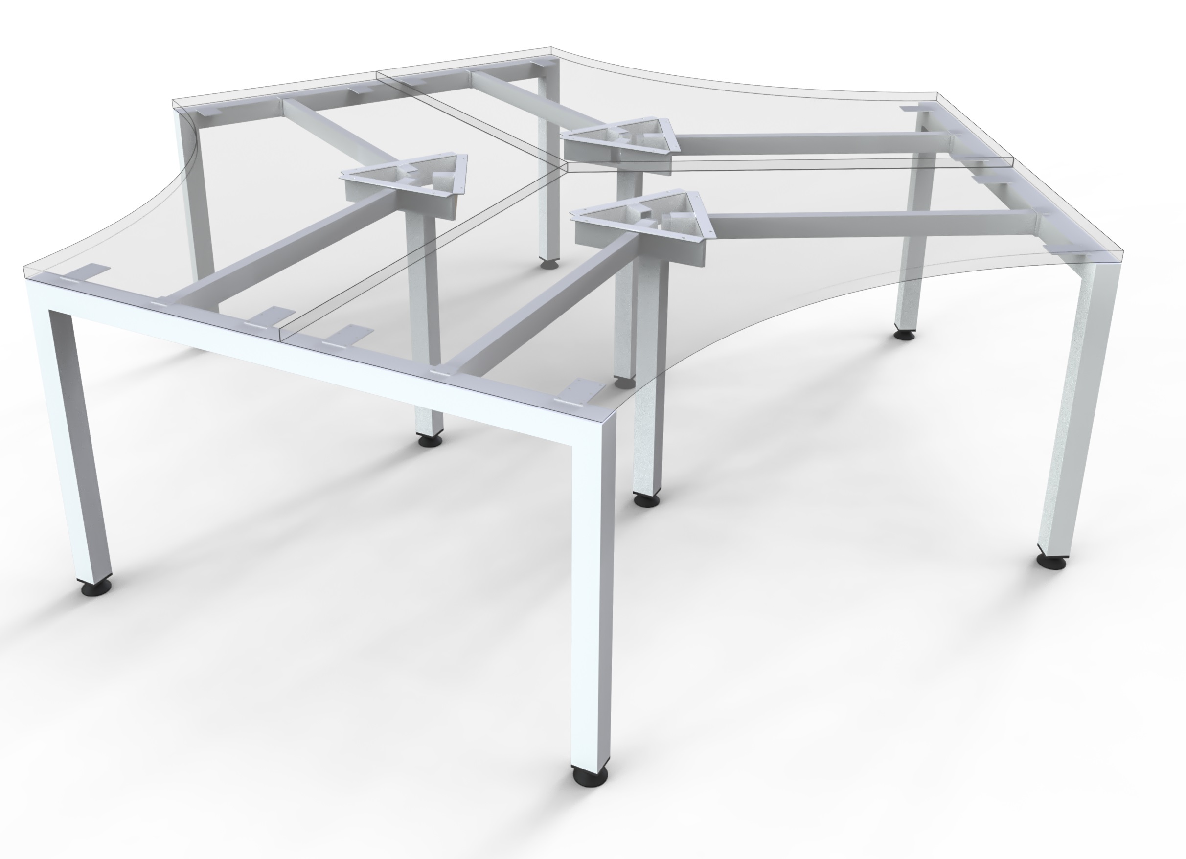 A space saver workstation cluster for 3 sittings.
