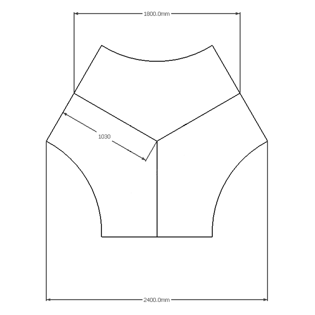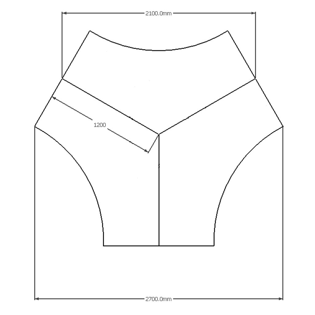 | Content | Infinity System 120 Degree Single End Leg Overall Size: 2700W x 2500L x 700D x 720H (with 1200 top) - For Contract Work Only