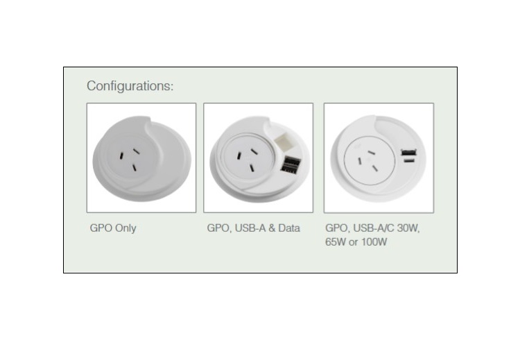 Flush Mount to Any Table Top. This accessory will enhance the look and use of any boardroom table. Easy access to the GPOs or charging ports while sitting on a chair and focusing on the meeting. Available in White, Black And Silver Colours.