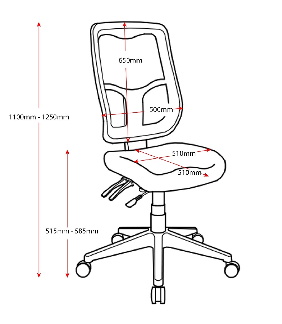 | Content | Merida Mesh Back Chair Seat: 520W x 510D x 510 - 600H Size: 700W x 700D x 980 - 1140H