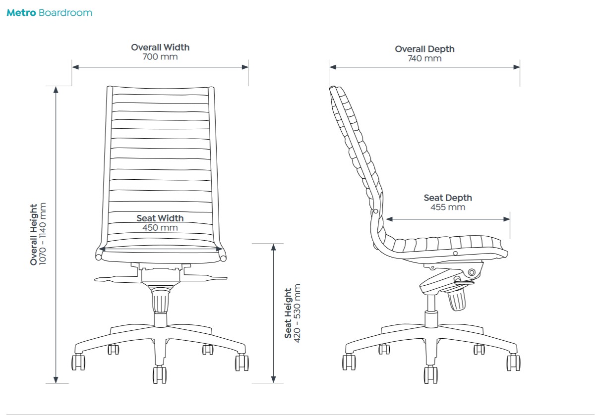 | Content | Metro Boardroom Meeting Chair Seat: 465W x 465D x 420 - 530H Size: 700W x 740D x 1070 - 1140H
