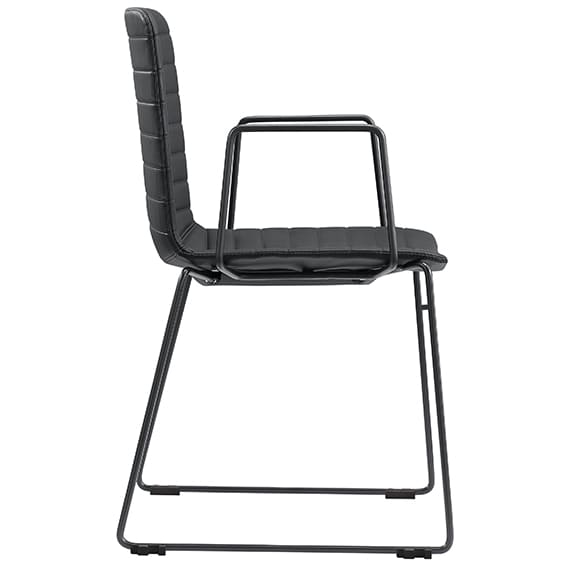 FEATURES: - Black PU Only - Plywood shell - Fully upholstered - High density foam - Sled black frame - Weight limit 120kg - 4 year warranty