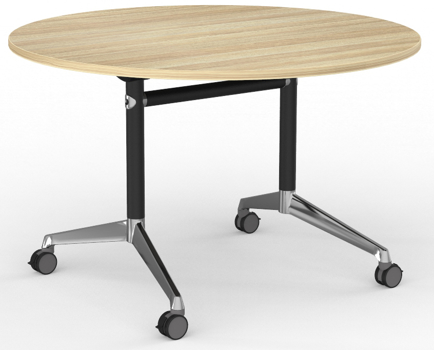 | Content | Modulus Mobile Round Flip Meeting Table Size: 1200D x 720H Modulus Flip has a High quality commercial-grade frame with a smooth pull-out Flip Mechanism.Perfect for Training Rooms, Meeting Rooms, Conferences, Catering events, or simply staff desks.Certified to AFRDI Level 3. This unit has a strong mechanism with locking castors for stability and safety.Easy to unlock to flip and neatly store if not in use. Lightweight unit, You can move and relocate with ease. This Heavy Duty frame Comes in 3 Options:- White Shafts and Polished Alloy Feet- Black Shafts and Polished Alloy Feet- And All Matt Black Frame Other Rectangular Size Options are:Size: 1200 x 600 x 720H   = $600Size: 1500 x 750 x 720H   = $650 Size: 1800 x 750 x 720H  = $700Size: 1800 x 900 x 720H  = $720Size: 2100 x 900 x 720H   = $770 FEATURES:- 25mm Quality Top- Matching Edging all over- Superior Cams and Fixings- 2 Lockable Castors for Safety- Easy to operate pull out mechanism- Tested and Certified to AFRDI Level 3- Polished Alloy Feet or Full Black Frame- Powdercoated Posts, Rails and Pull Bar- Choice of Colour or Wood Grain for the Top- One frame fits all size tops - retractable beam- Heavy Duty Commercial Grade Steel and frame- Table Links are included- 10 years warranty- Assembly $40 Choice of 8 Colours -- White- Natural Oak Made to order colours up to Size 1800mm   - Add $30 Made to order colours over Size 1900 - 2100mm   - Add $80- Beech- Cherry- Redwood- Casnan Walnut- Regal Walnut   - Tawny Linewood- Blackened Linewood UNBEATABLE FREIGHT COSTS -Customers buying 2 or more items from our store will automatically receive our unbeatable shipping rates.We deliver Australia-wide. Contact us with your postcode to get the best shipping price.Please enquire about freight quotes at info@officeplan.com.au METROPOLITAN SUBURBAN B2B RATE - Melbourne Metro Delivery from $50- Interstate shipping is available - Enquire - Metro CBD, Shopping malls or any upstairs delivery is extra- Pick up from Warehouse or Preston free (email or call for details) FREIGHT WARRANTY & CONDITIONSCustomers who have paid an additional $10 for freight insurance must submit any claim in writing to Office Plan within two days of delivery.Claims made after 2 days cannot be accepted, and items will be deemed as received in good order. ogp | Brand New Round Meeting Table with Cross Base Size: 1200 diameter