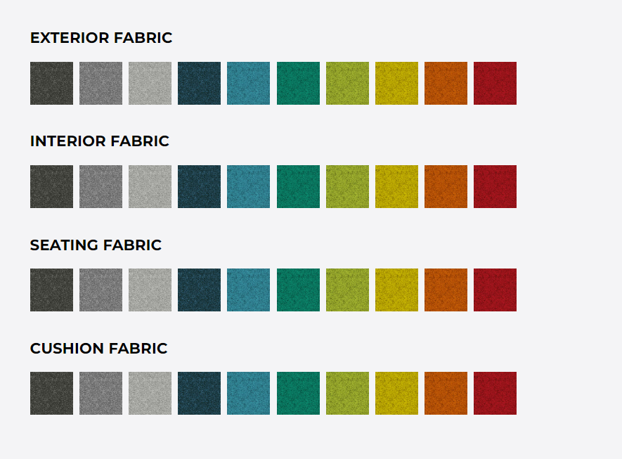 FEATURES: - Premium Yarn Upholstery - Water Repellent Material - Fire Retardant Properties - For Heavy Commercial use - Well Padded seat and back - Enhanced Motion Durability - Multi Density Acoustic Foam - High Sound Absorption >70% - Martindale Test >100000 Rubs - Robust Base and frame structure - Composition 50% Wool 50% Polyester - Multi Colour combinations are available - And Available in many shapes and sizes - 10 Years Frame + 5 Years Fabric Warranty
