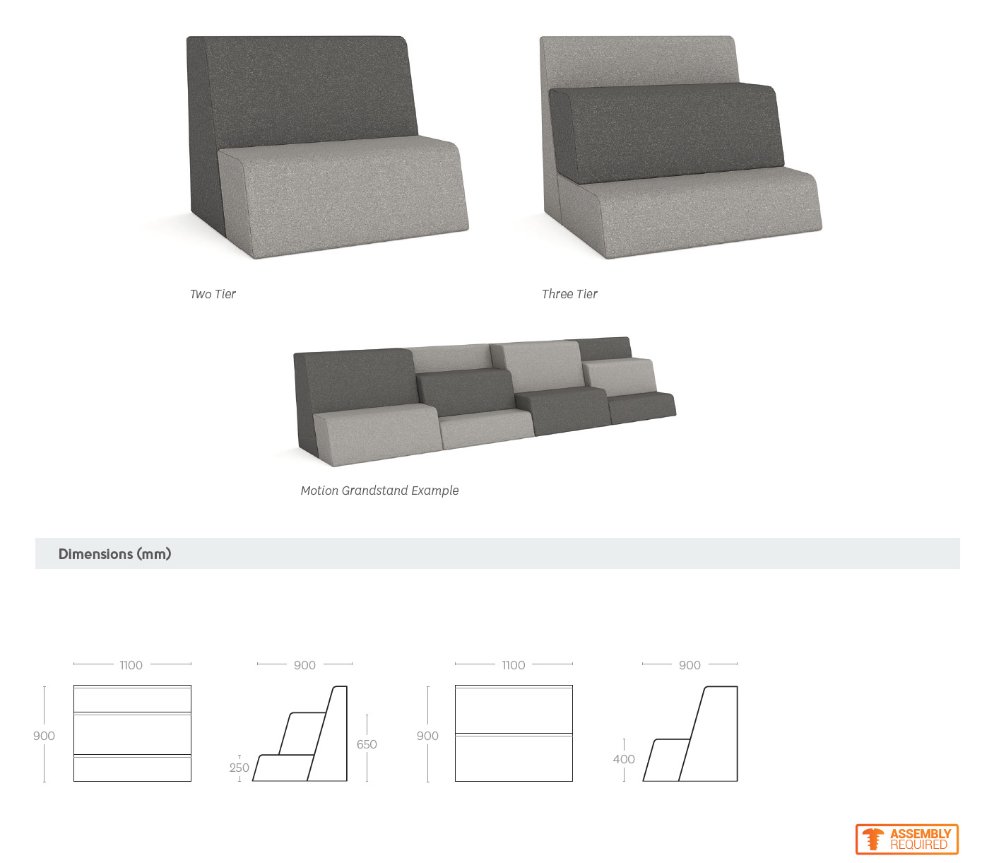 Motion Grandstand provides tiered seating for anything from quick meetings and presentations to relaxation.