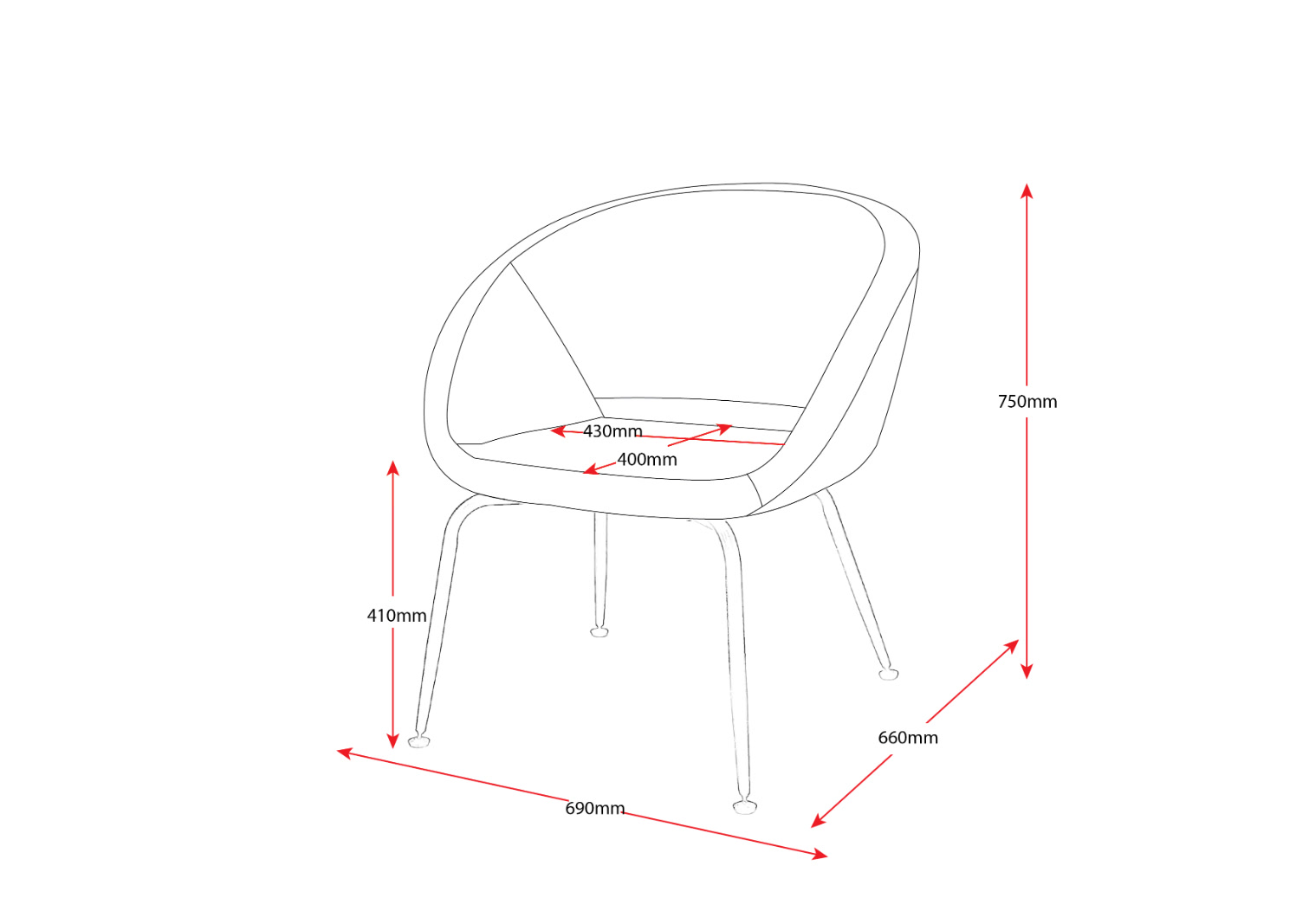| Content | Opal Tub Chair Size: 690W x 660D x 750H
