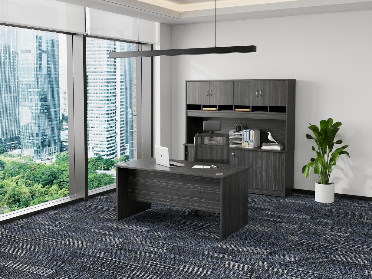 Introducing Office Plan's New Elegant wood grain finishes. Made of Premium grade laminated boards only. This core range is value for money at its best and brings a professional edge to your progressive office environment. This is strictly very high-quality furniture. and you will be proud to own it. Commercial Grade Quality is Guaranteed. This finely crafted desk will give you years of use. - An Entire Range of matching office furniture is available ie credenzas, bookcases, drawers, wall units etc.