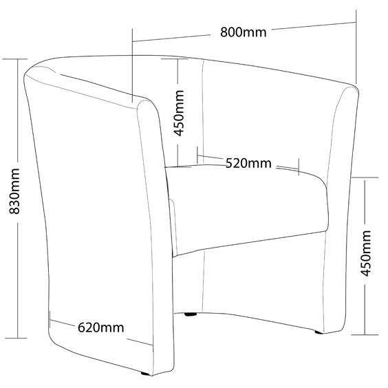 | Content | Orion Nox Tub Chair Overall Size: 800W x 620D x 830H Seat Size: 800W x 520D x 450H