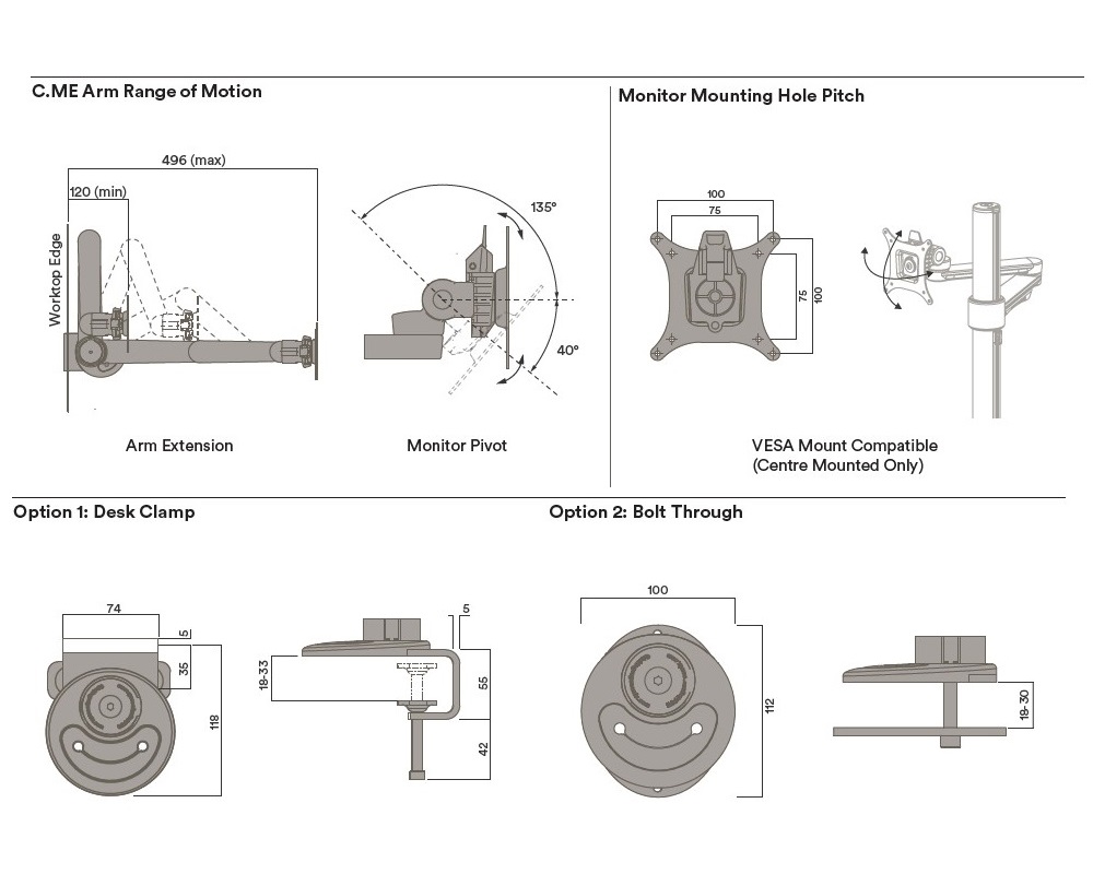 – Both bolt through and desk clamp mounting kits are included as standard
