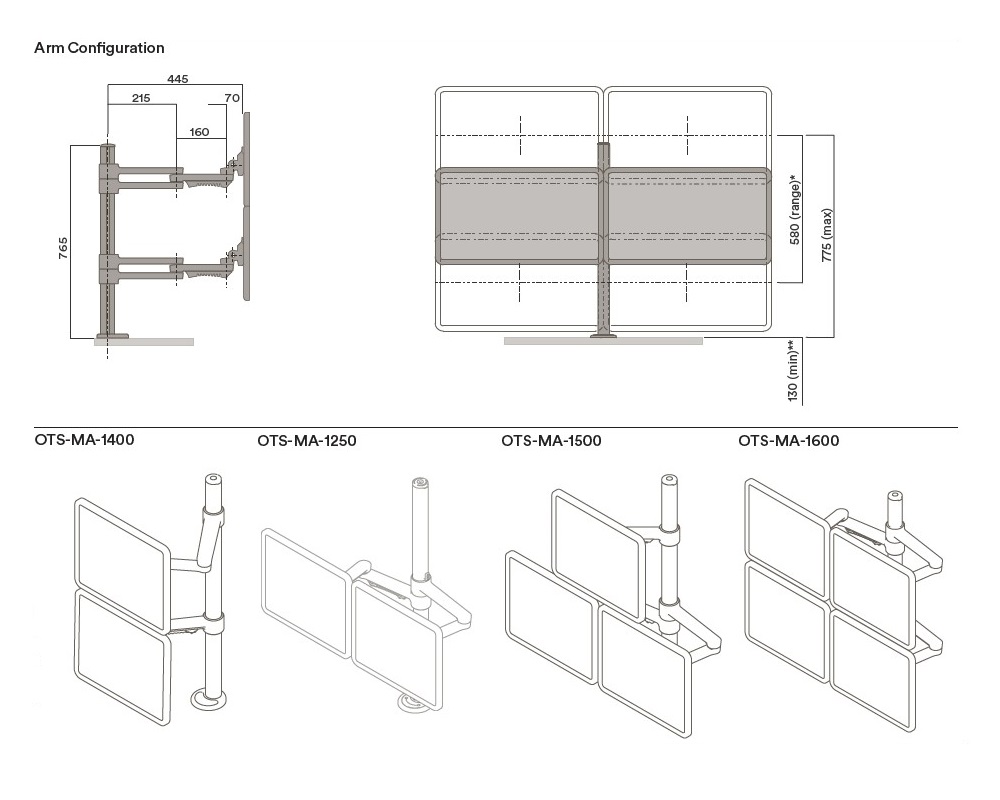 OTS Monitor Arms are made to the highest quality standards and can be configured to hold up to 4 monitors.