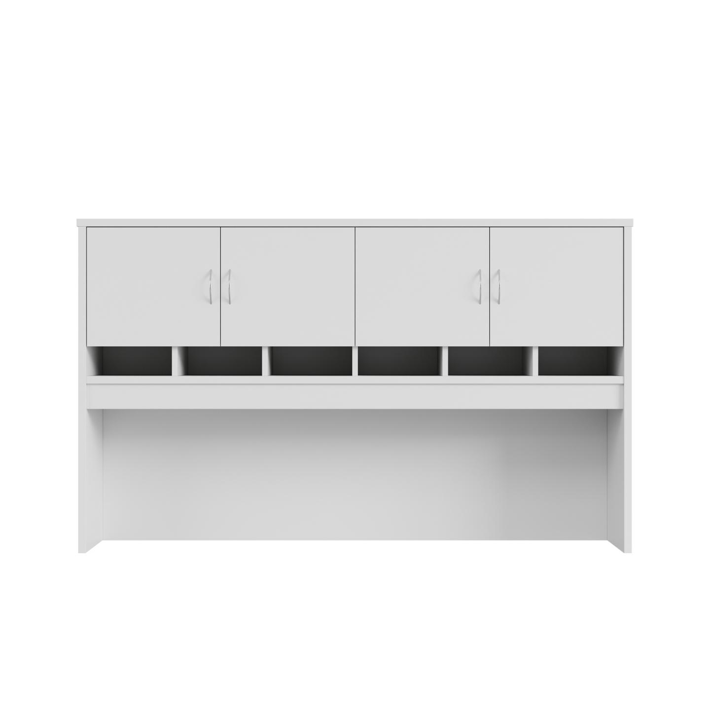 This is a commercial-grade high quality hutch with pigeon holes. Unique core range. Made of E1 quality board with matching ABS edging throughout. This unit can be installed on any Credenza, workstation or desk with a return. A convenient overhead storage solution. Perfect for any office environment and built to last for years.