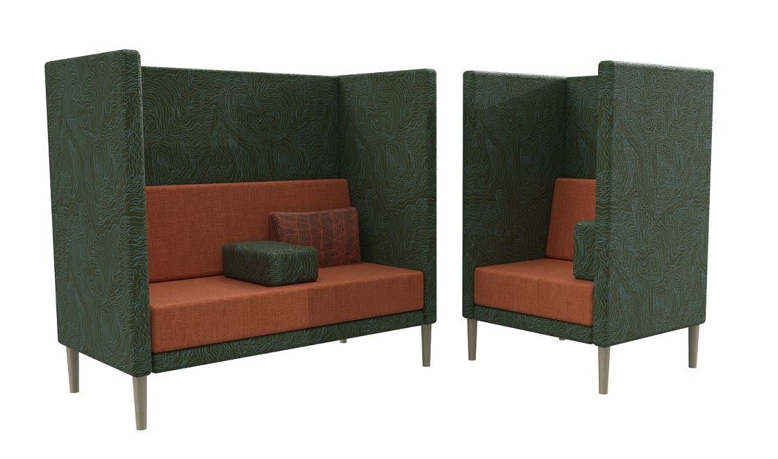 Ideal for breakout areas requiring privacy the Quiet series lounge features high-density foam cushioning and acoustic qualities.