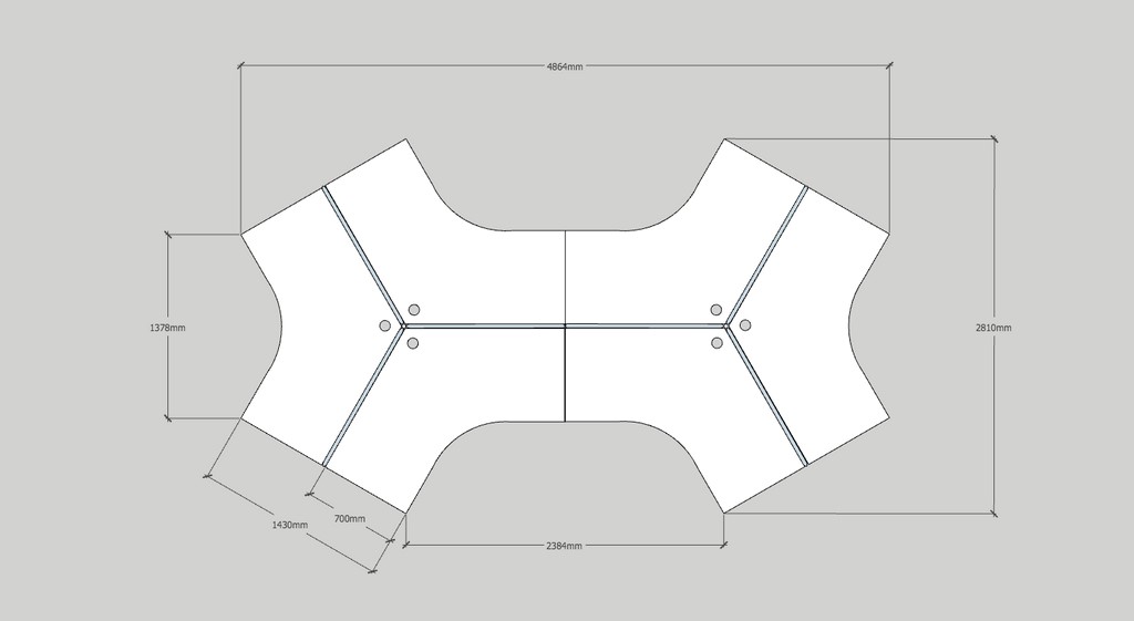 | Content | 120 Degree Workstation Pod 6 Persons Sitting Overall Size: 5000L x 3000W x 700D x 720H