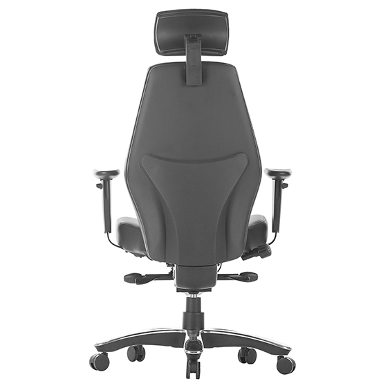 This is a solid strong robust chair. Designed to withstand heavy weight. This leather chair is perfect for use in control rooms, security staff chairs, or simply for heavy-duty use. Well-padded for extra comfort and those long hours sitting. Has adjustable arms and an optional headrest.