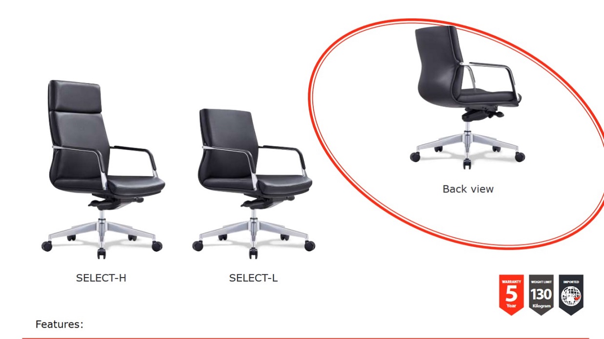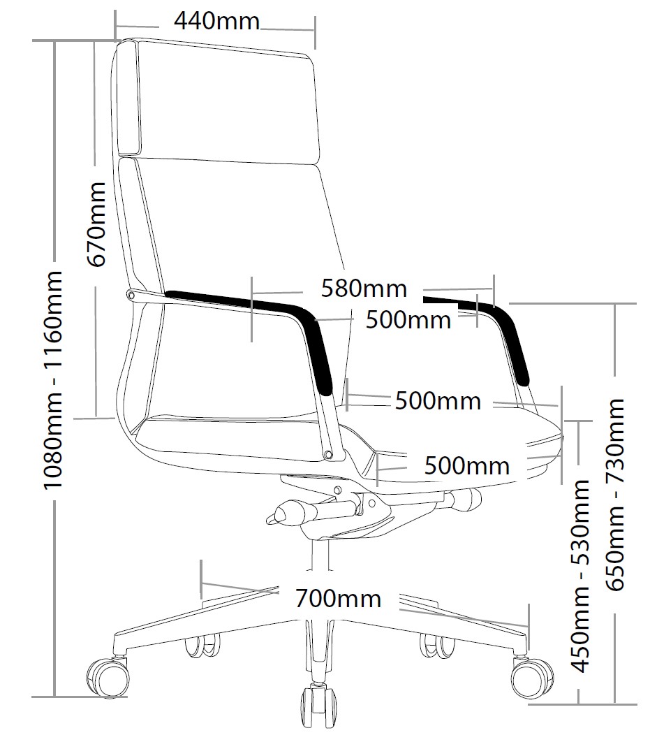 | Content | Select High Back Executive Chair Seat - 500W x 500D x 450 - 530H Size - 700W x 700D x 1080 - 1160H