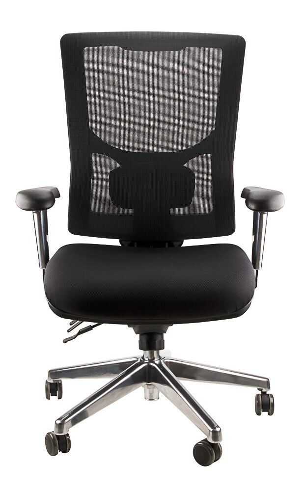 Fully ergonomic with 4 lever Adjustment, Adjustable Lower Lumber Pad and seat slide all backed with commercial grade foam.