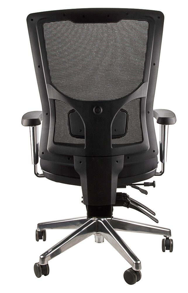 FEATURES: - Wrap around mesh back - AFRDI Level 6 Accreditation - Ratchet Back Height Adjustment - 4 Lever Fully Ergonomic Mechanism - Seat Slide Feature To Adjust Seat Depth - Optional Polished Alloy Base & Arm Rests - Adjustable Lower Lumber Cushion Pad - Knee tilt lever and Seat slide feature - Seat And Back Angle Adjustment - Available in 2 Colours - Weight Rating 160kg - 7 Year Warranty