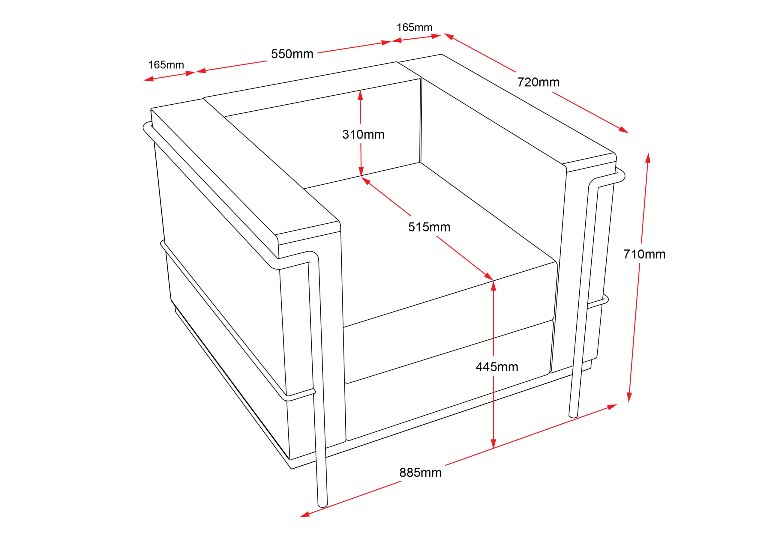 | Content | Space Single Seater Reception Lounge Overall Size: 870W x 730D x 690H