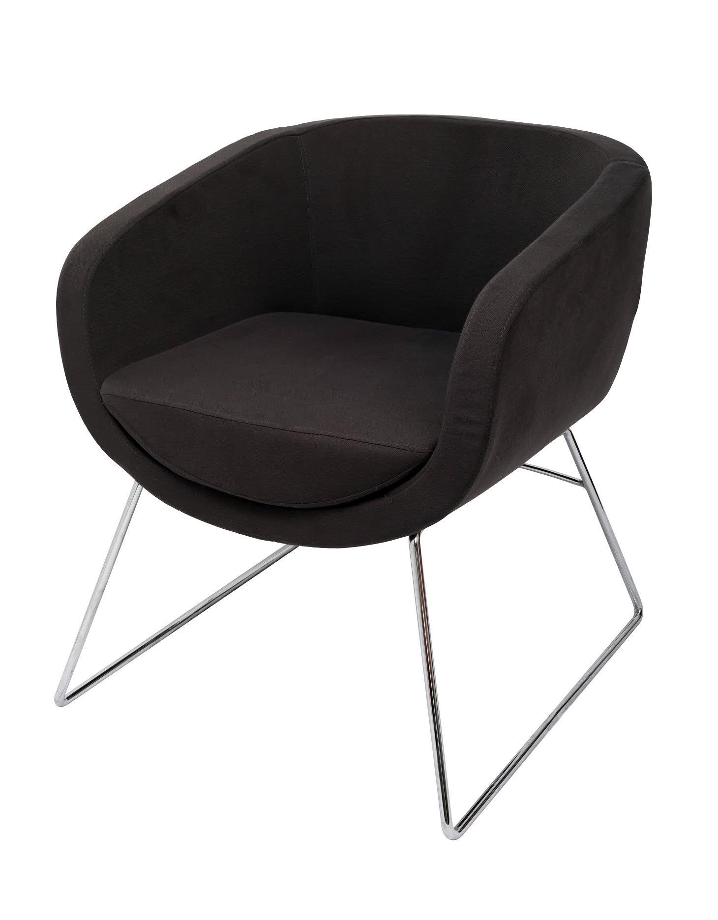 FEATURES: - Stylish Shape - Fabric Upholstery - Chrome Sled Base - Internal Width 550mm - Colors: Red or Charcoal - Floor to Seat Height 495mm - 2 Years warranty