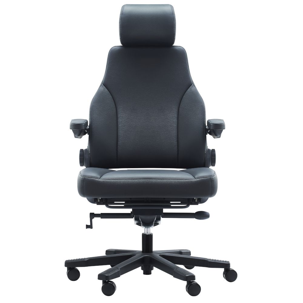 This is a solid strong robust chair. Designed to withstand heavy weight. This leather chair is perfect for use in control rooms, security staff chairs, or simply for heavy-duty use. Well-padded for extra comfort and those long hours sitting. Has fold-back armrests for close sitting. This is the strongest heavy-duty chair in the market.
