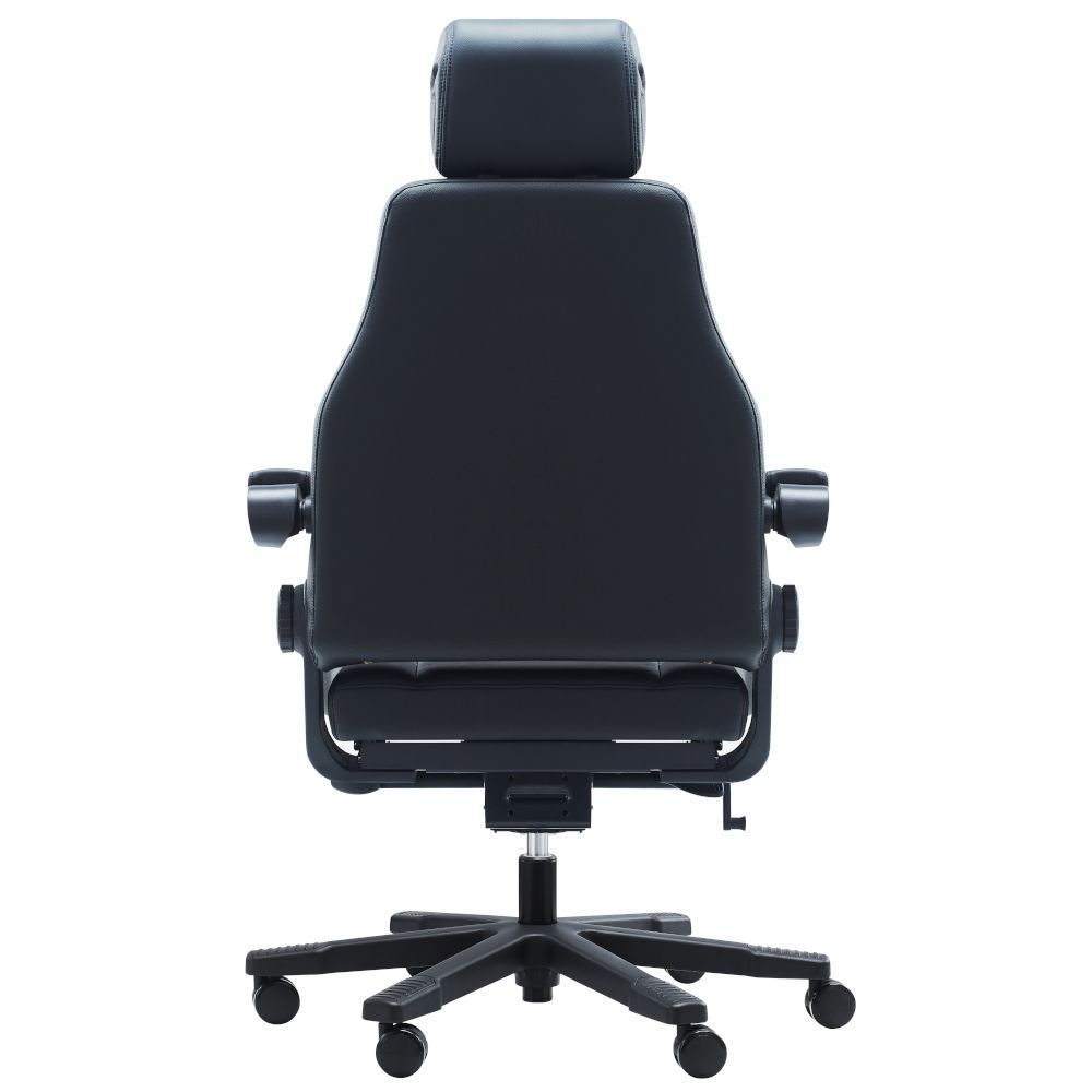 FEATURES: - Genuine Leather - Tension Adjustment - Adjustable Seat Slider - Moulded seat and back foam - Lockable incline, fold-back armrests - Synchron mechanism with 3 locking positions - Free Float Tilt Back or Lockable Mechanism - 750mm black aluminium 6 star base - Back made of metal construction - In Black automotive leather - Heavy duty Brake castors - Weight rating is 230kg - 4 Year warranty
