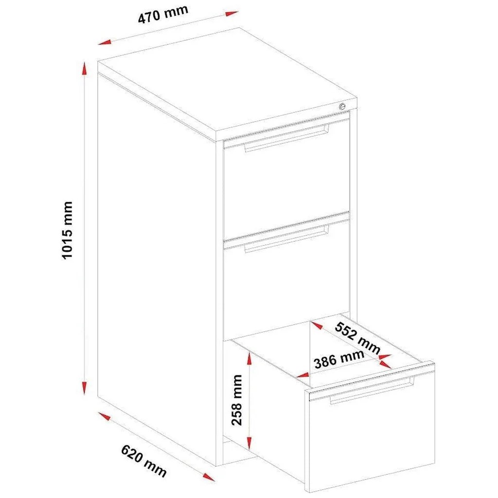 Available in 3 Sizes 2 drawers Size: 470W x 620D x 710H 3 drawers Size: 470W x 620D x 1015H 4 drawers Size: 470W x 620D x 1320H