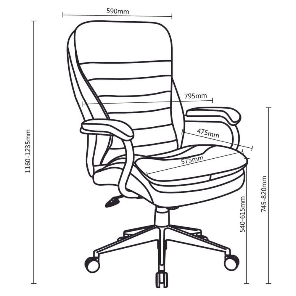 | Content | Titan High Back Heavy Duty Leather Executive Chair Seat: 575W x 475D x 540 - 615H Size: 795W x 700D x 1160 - 1235H